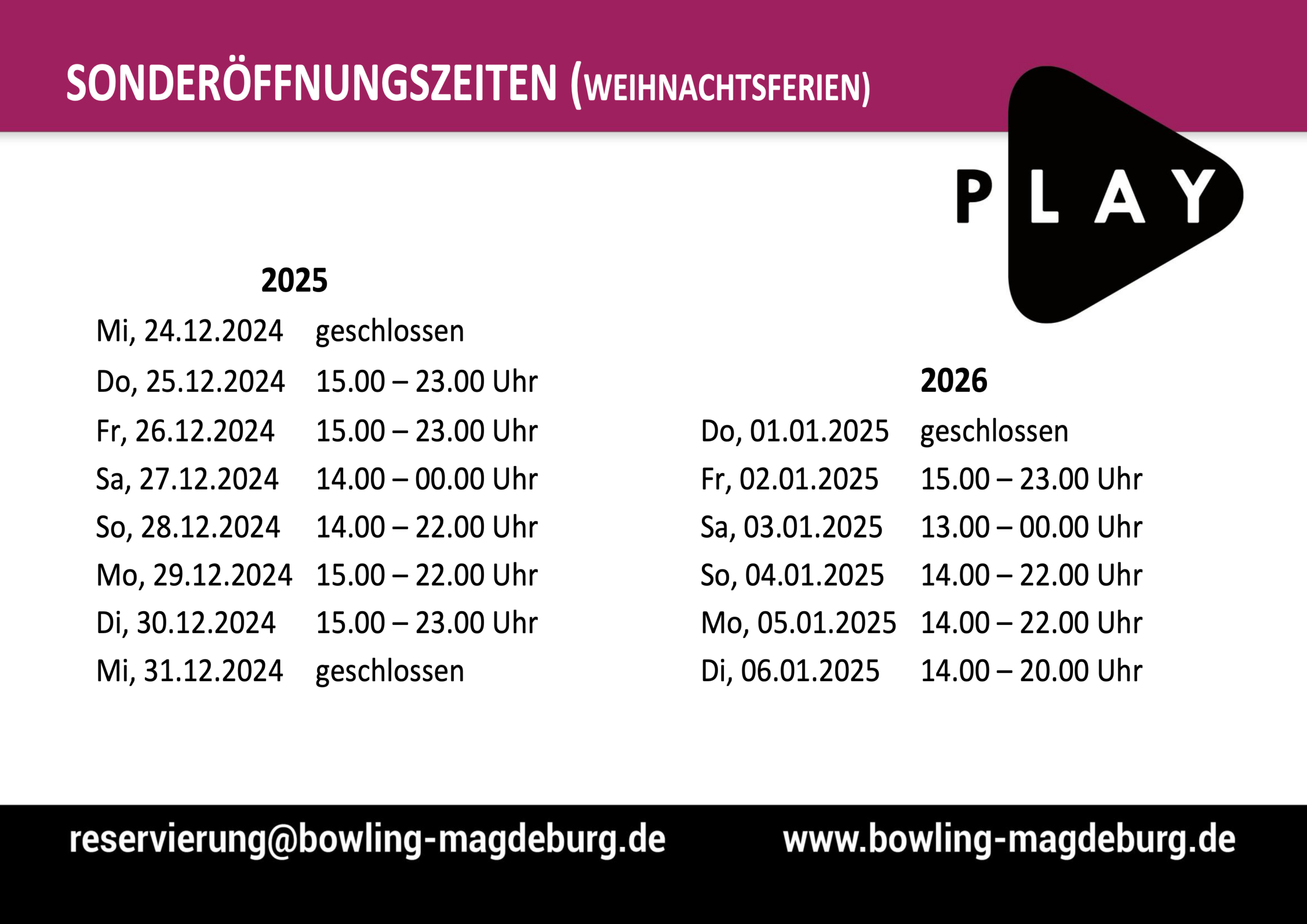 Liebe Bowling-Freunde des Play Magedeburgs,